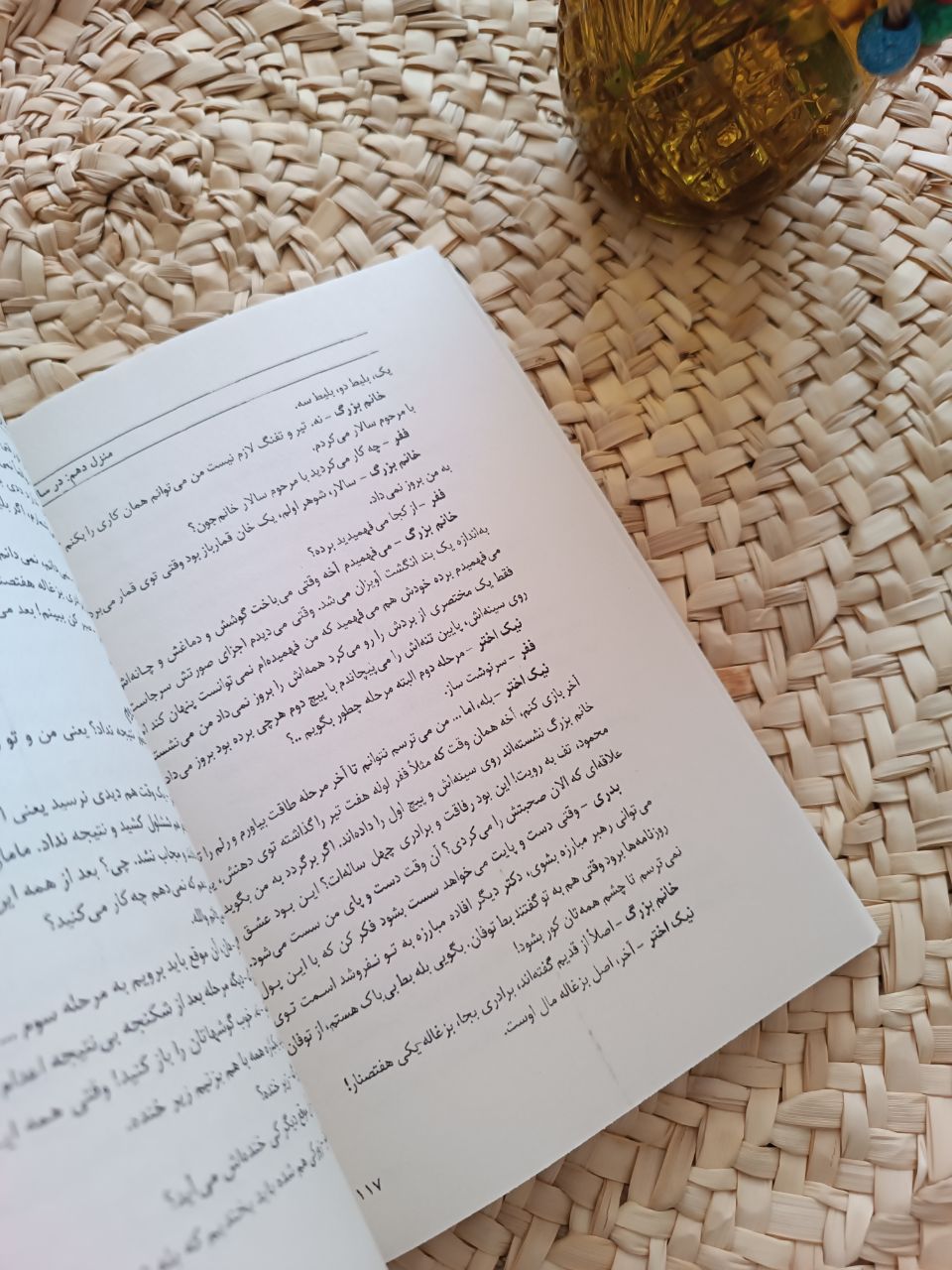 آنها دو فرزند به نامهای فرهاد و فرشته دارند. فاطی خدمتکار جوان آنهاست که تحصیل کرده و بافرهنگ است و نسبت به سایر اعضای خانواده شخصیت موجهتری دارد. مادربزرگ و خانعمو و فرزاد شخصیتهای دیگر داستان هستند. خانعمو همکلاسی آقای نیکاختر مدتی برای تفریح به آمریکا آمده و مهمان خانوادهی نیکاختر است. بیشتر حجم کتاب دیالوگهایی است که بین شخصیتها رد و بدل میشود و کمتر به توصیف مستقیم مکان و شخصیت و غیره پرداخته شده است.